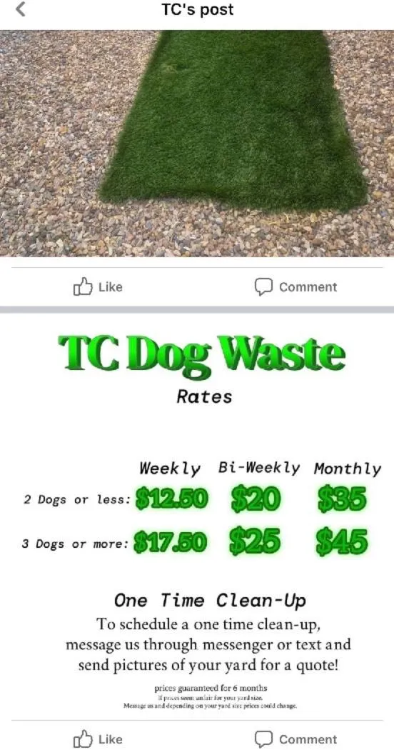 Turns out, scooping poop paid better than scrubbing tires—and it didn’t take much to get started. A box of trash bags and a willingness to sweat was all we needed. After that first job, we put out a post in a neighborhood group, and people started reaching out. A lot of people.